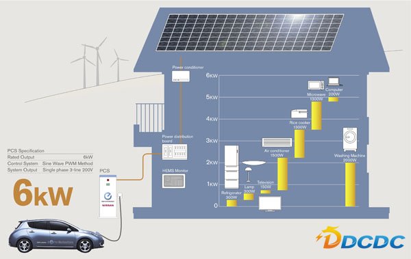 你是否想过,其实电动汽车就是一个体型巨大的移动电源?比如当你的手机电量耗尽时,将其连接到电动汽车的某个端口,就能进行充电。同样,不仅是移动设备,其他任何以电为能源的设备都可以从电动车上取电。甚至当你家里停电时,电动汽车就是最好的备用电源。这一切无需幻想,日产公司已经帮我们实现。